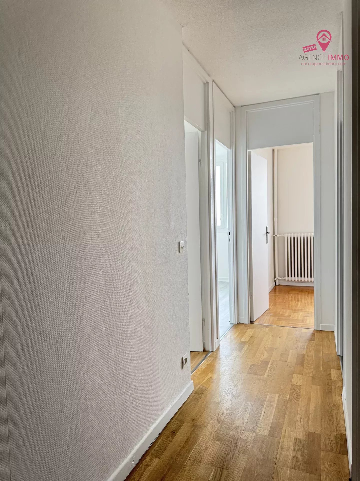 Il comprend un hall d'entrée avec placards, un séjour avec cuisine aménagée et équipée (39 m²), 4 chambres, une buanderie, un dressing, une salle de bains, un WC séparé et un parking collectif.