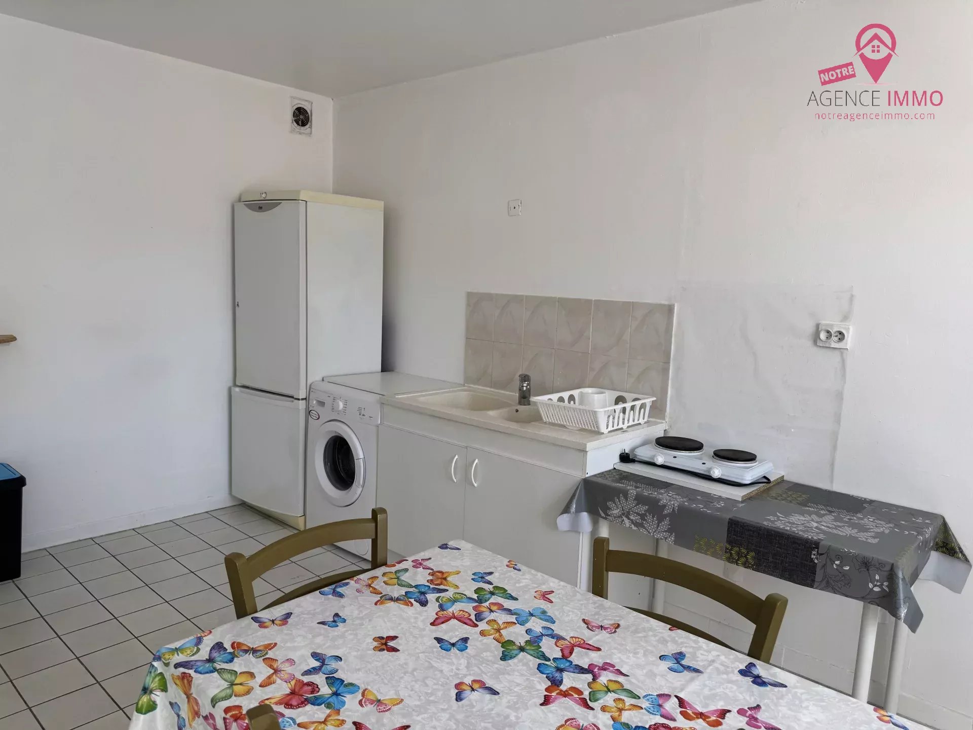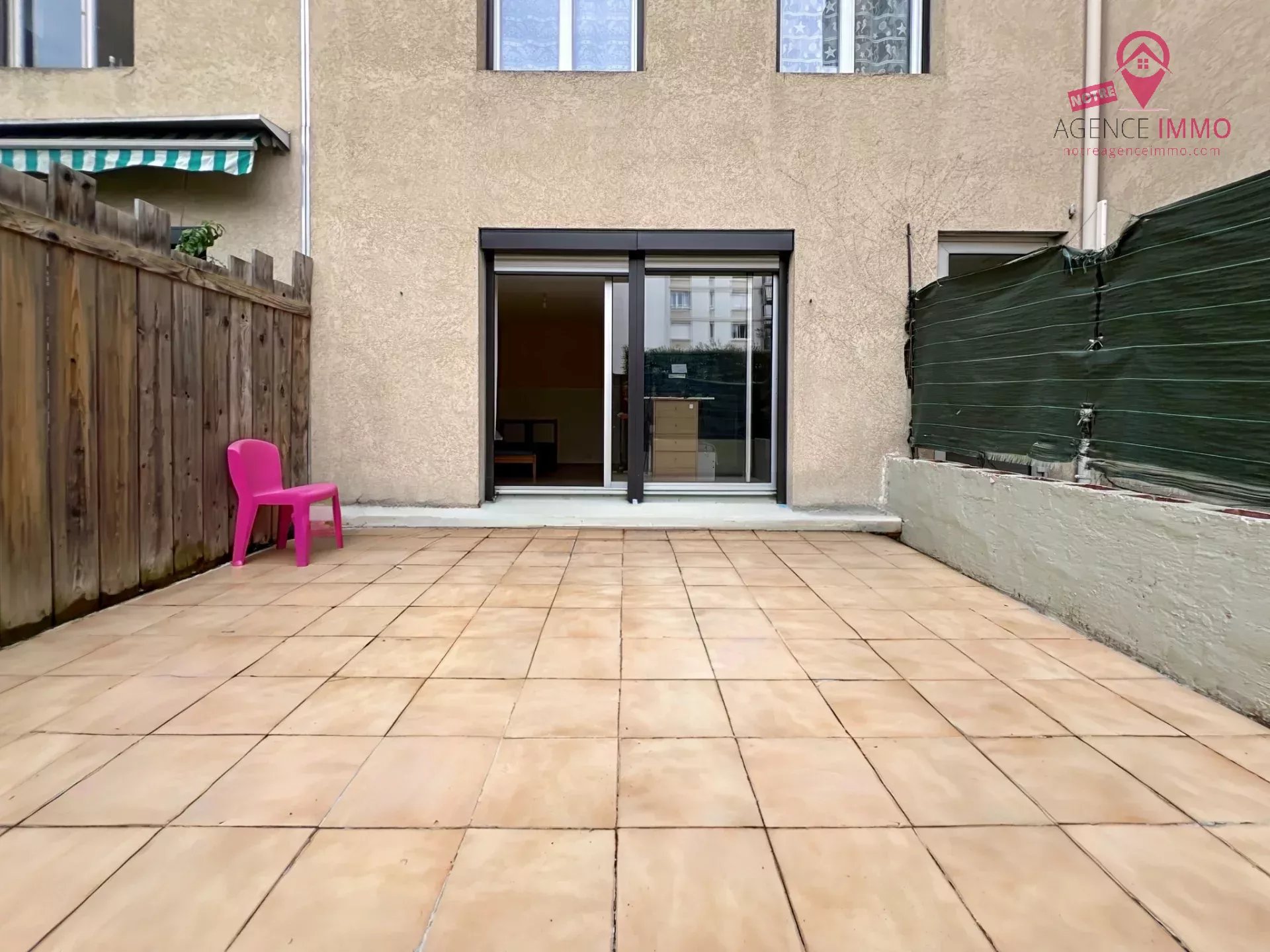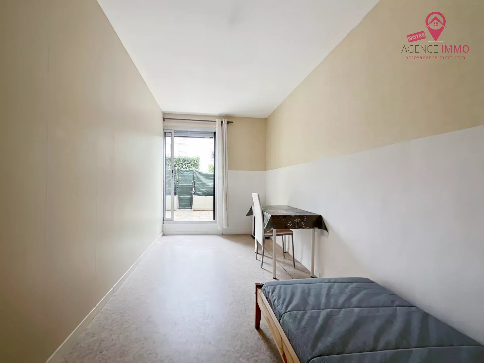 Cet appartement meublé T3 en rez-de-chaussée de 53.42m² comprend une entrée avec un grand placard mural, une pièce de vie avec cuisine aménagée et équipée (lave-linge, réfrigérateur, four, plaque de cuisson et four à micro-ondes), deux chambres, une grande terrasse privative de 19.91m² au calme donnant coté cours, une salle de bain et un WC séparé.